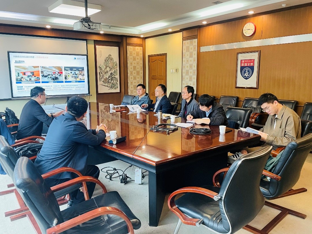 吴仲毓总经理详细介绍了睿数科技的核心业务布局与校企合作实践成果。作为专注于经济管理、人工智能等学科领域的实验平台研发企业,公司打造的“海豚实验室”已为国内多所高校提供了专业的实验教学解决方案。吴仲毓表示,西安交大管理学院在管理学科建设与高层次复合型管理人才培养方面积淀深厚,学院的学术积淀与育人理念与公司的发展方向高度契合,期待以此次交流为起点,与学院建立长期稳定的合作关系,共同探索校企协同创新的新路径。