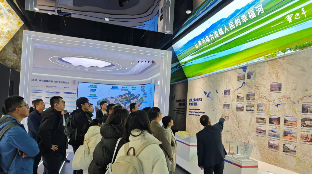 在公司党委副书记银桂林的陪同下,一行人分别参观了企业展览馆、水利发电实验室、大坝仿真中心、职工活动中心。在企业展览馆,通过丰富的图文资料、实物模型及荣誉奖杯,同学们系统了解了中国电建西北院自1988年成立以来,承担了长江三峡水利枢纽工程、南水北调、乌东德水电站、两河口水电站、滇中引水等多项工程的咨询、监理及总承包管理工作,足迹遍及全国,业务覆盖世界的光辉历程,深刻体会到企业深厚的红色基因与“诚信、负责、务实、利他”的核心价值观。在水利发电实验室,同学们近距离观看各个工序的实验室,深入探寻该站运行的基本原理和采用的最新技术成果;在大坝仿真中心,直观感受到世界超级水电工程的复杂性与先进性;在职工活动中心,通过完善的体育设施感受企业浓厚的人文关怀氛围。