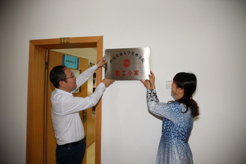 最后,校工会张庆生副主席与院党委陈红书记一起为“职工小家”挂牌,并与大家合影留念。